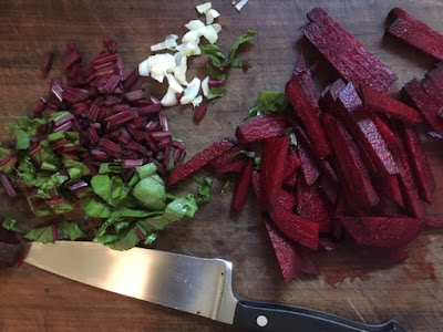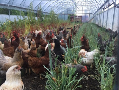 GREENS CHOICE: The high tunnel chard and kale in the field are thriving right now. Our regular use for these healthy greens is to chop it fine and add it to our pasta sauce. We love the color and richness they add to a dish.