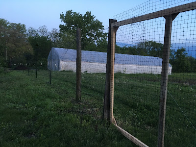 On the spur of the moment on Monday, we rebuilt the deer fence along the driveway. For years a deer wouldn’t dare walk so close to the homestead because of our dear Rocky dog. Four years since his passing and the deer are coming right up the driveway. So, while I got in a visit to my grandma and mom for Mother’s Day, Tom and Luke did this.
