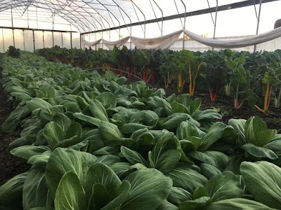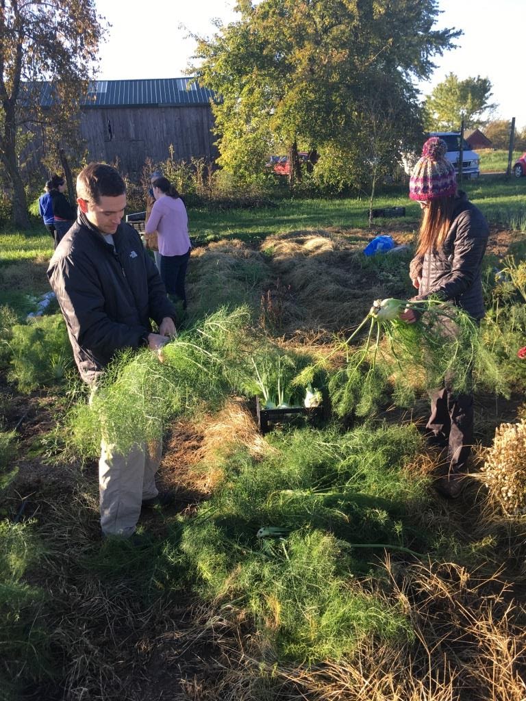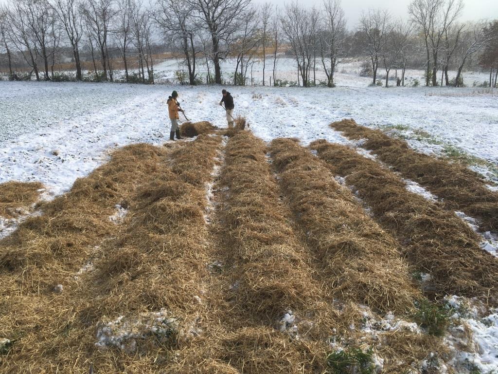 After we peel away half of the leaves, we are left with a somewhat intact heart. Other plants like kale, chard and tat soi benefit from picking them back and a good pile of mulch. Good leaves off of these plants make up the braising mix this week.