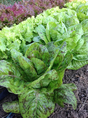 LETTUCE The first heads from the fall patch. Forellenshluss, the Austrian speckled romaine starts the season.