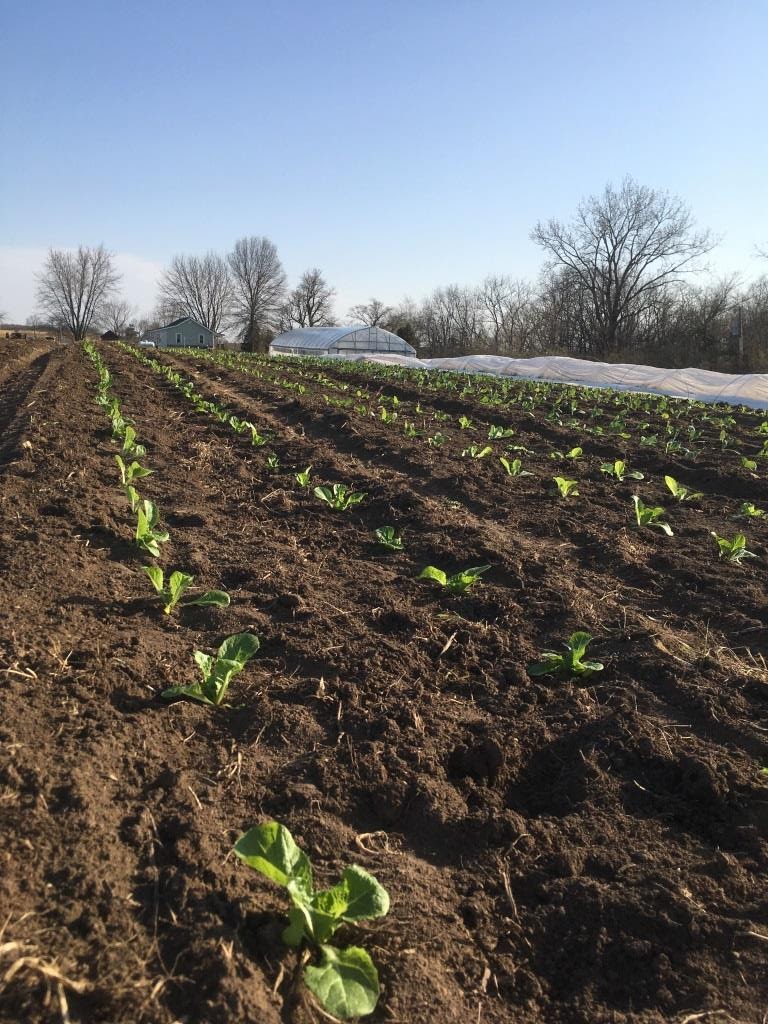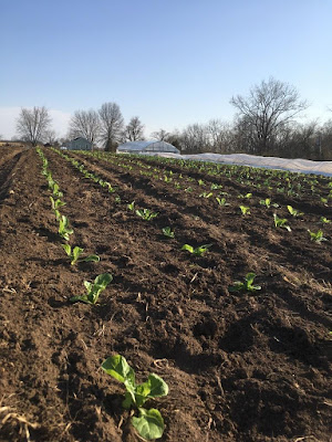 This space is where I (Rebecca) usually gripe about the weather, but holy hell what a Spring this has been!  Ice, snow, and freezing temperatures for the last three weeks have thrown our schedule for a loop.  We did our best to adapt to the forecast by double covering all of the transplants already in the field, holding the many more inside the greenhouse and putting covers on all of our tender seedlings that had just popped their little heads above the soil.  It appears our efforts have paid off.