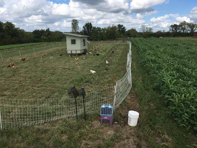 As we must feed the membership, we must also feed the soil. This photo shows our two key steps in growing healthy organic produce:  chickens and cover crops.  The August rains helped the summer-seeded cover crops of sorghum Sudan grass and cowpeas flourish. They look great next to the chicken yard. The scratching and eating and the birds do (along with their fertilizing) will prep the beds for overwintering and then a Spring planting.