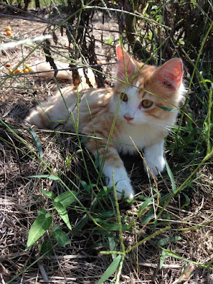 Our first day back, we welcomed a traveler from part’s unknown. Sandy we are calling him at the moment is a clown and a snuggler. We are hoping Mommakitty warms to him in time and maybe can teach him how to be a good farm cat.