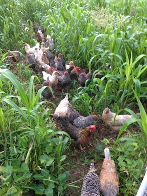 A big bear hug of a thank you to Todd, Jody and Brendan who held down the fort while we were away. It’s not just anyone who can keep the farm running smoothly with the crops, chickens, high tunnel and greenhouse. A big part of the daily chores is caring for the 100+ hens. Half of the flock is working on the Spring cabbage beds; the other is working on turning in the sorghum Sudan grass cover crop.