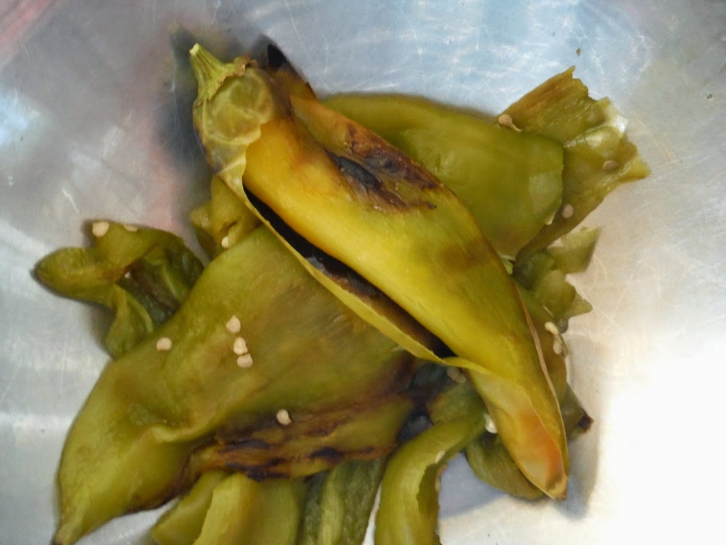 I used to roast my peppers by cutting them in half, cleaning out the seeds and membrane, and broiling until charred. A much better way is to put away the knife initially and simply roast the peppers whole. Turn them once when they start to blister. When both sides are done put them in a bowl with a plate over it. Let them steam about 5 minutes and peel. They are great on sandwiches, in potato salads, or to spice up some greens and beans.